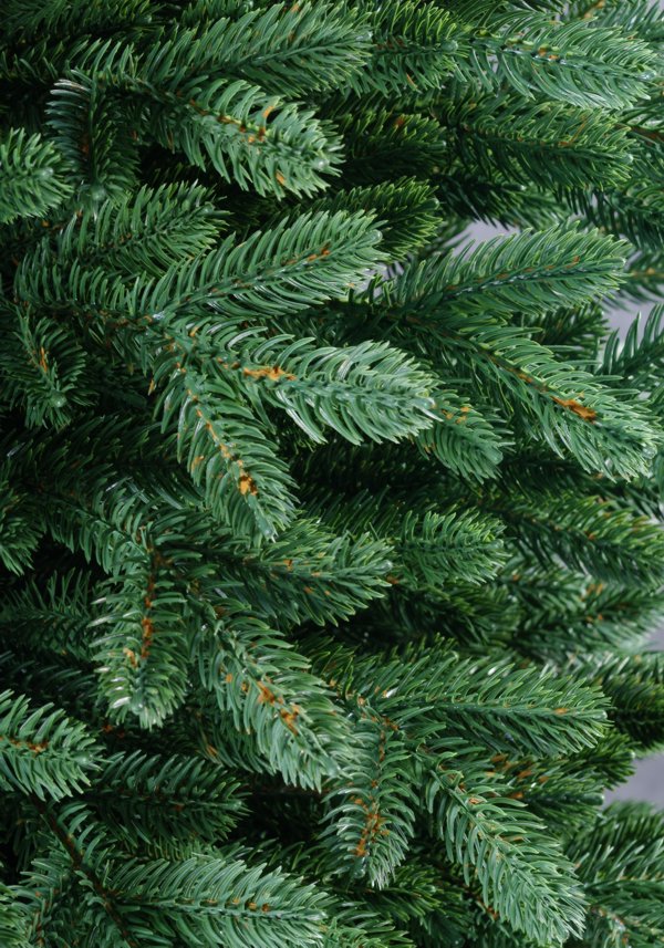 Ветки на стволе крепятся на шарнирах, опирается елочка на металлическую подставку. Литая PE в качестве материала веток – долговечная, отлично держит форму. Напольная комнатная елка имеет диаметр 102 см, вес – 14,1 кг.