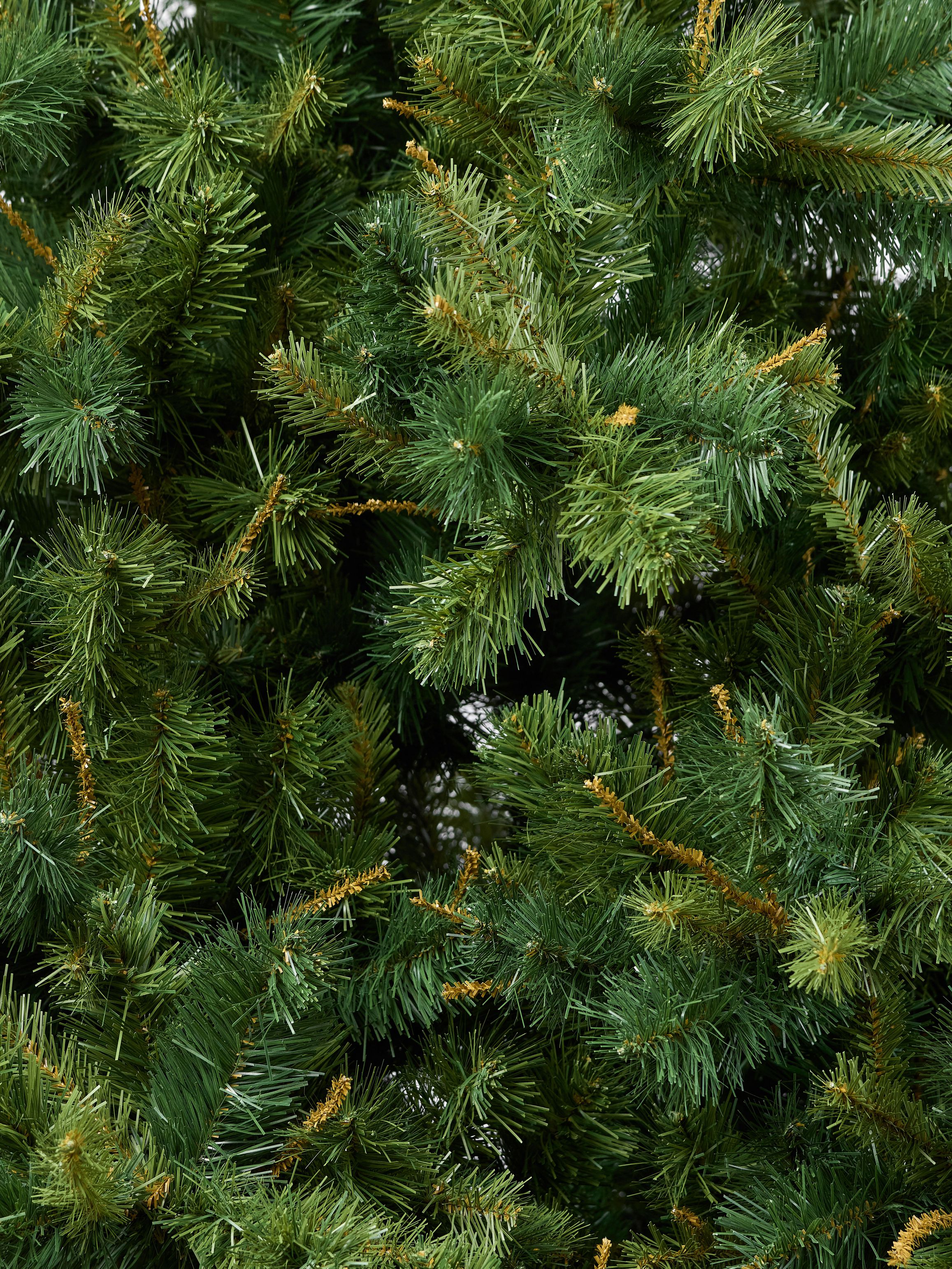 Модели представлены в нескольких вариантах высоты 1,5, 1,8, 2,1, 2,4 м, от высоты зависит количество веток на деревце. На фоне темно-зеленой кроны гармонично смотрятся новогодние игрушки. Длина хвоинок – 4,5 см, имитация сосны.