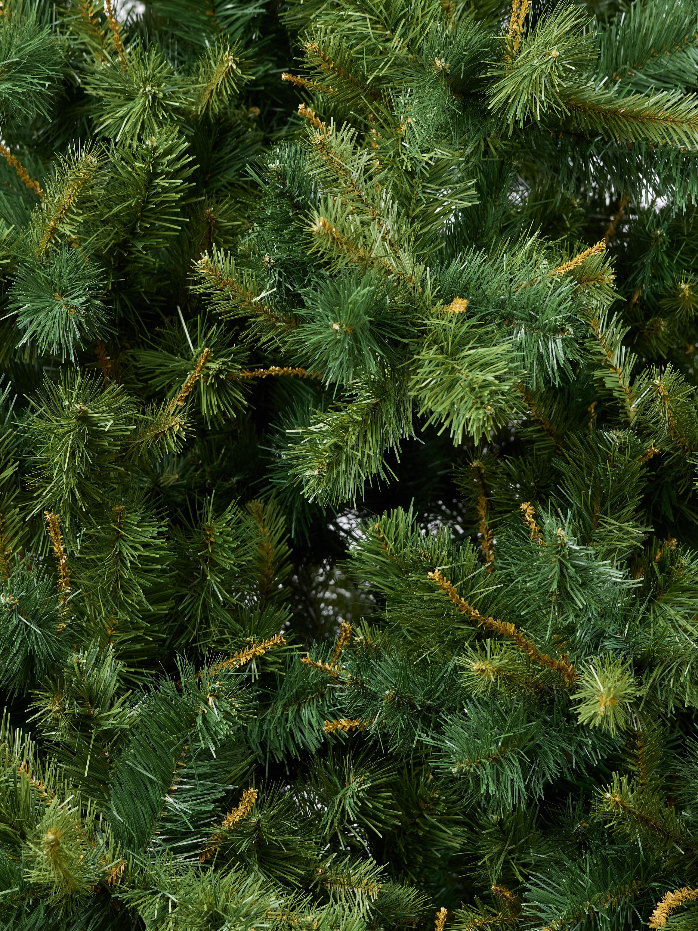 Модели представлены в нескольких вариантах высоты 1,5, 1,8, 2,1, 2,4 м, от высоты зависит количество веток на деревце. На фоне темно-зеленой кроны гармонично смотрятся новогодние игрушки. Длина хвоинок – 4,5 см, имитация сосны.